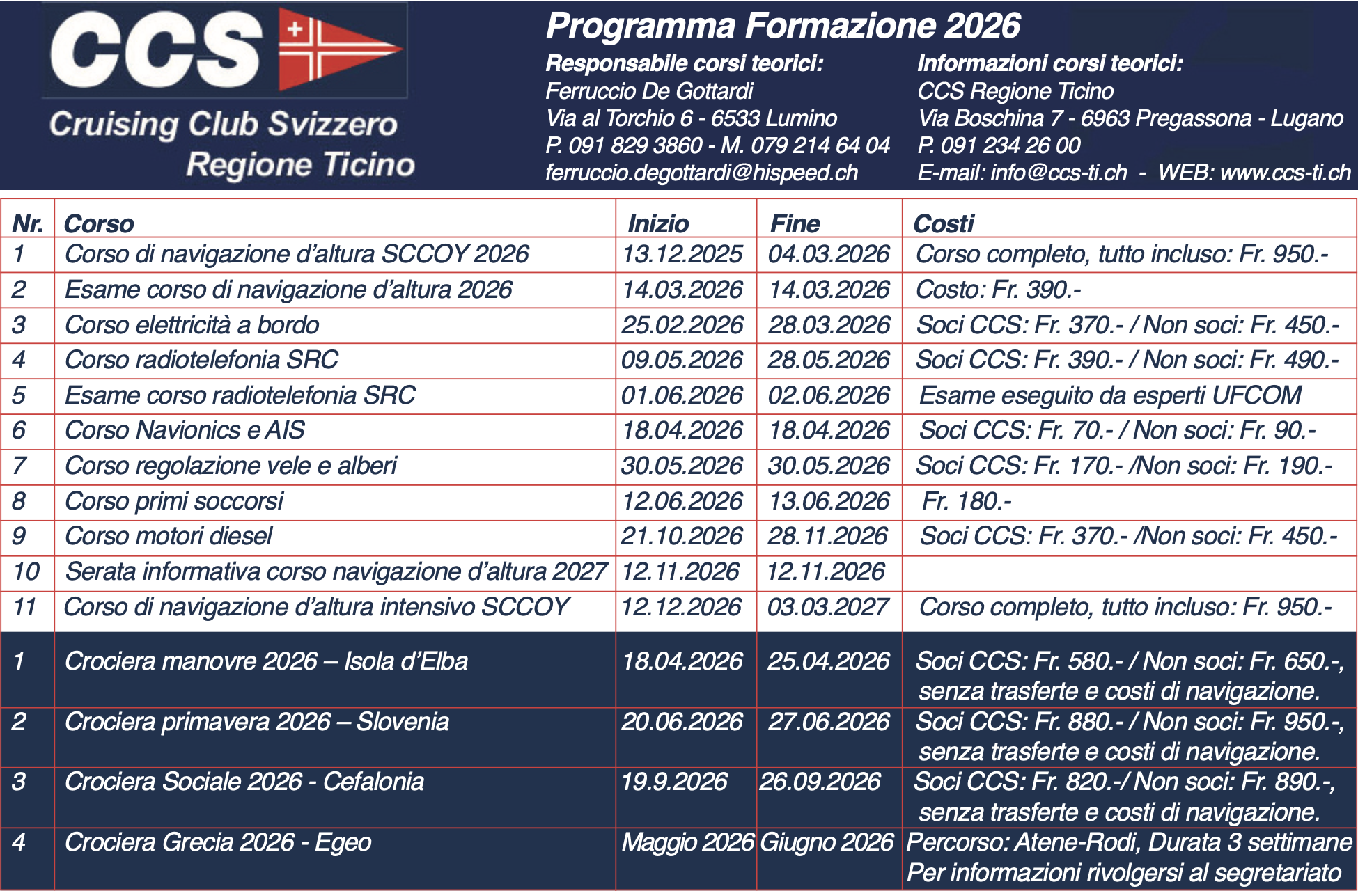 Corso di navigazione d'altura SCCOY 2026 - CONCLUSO